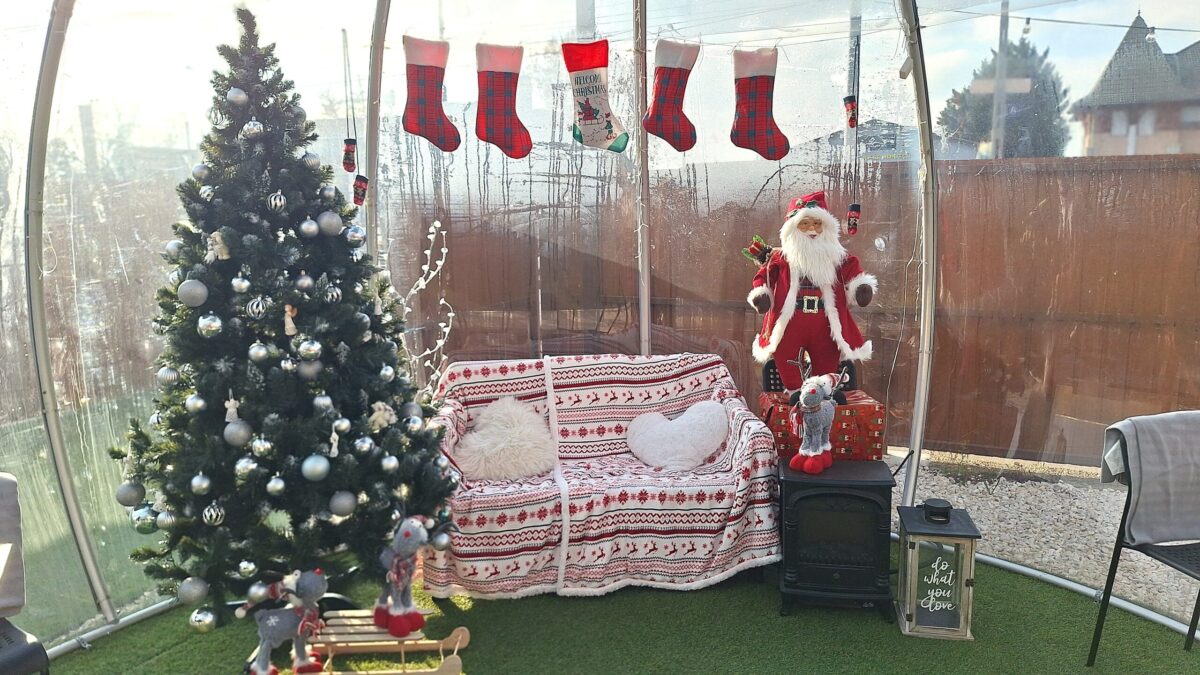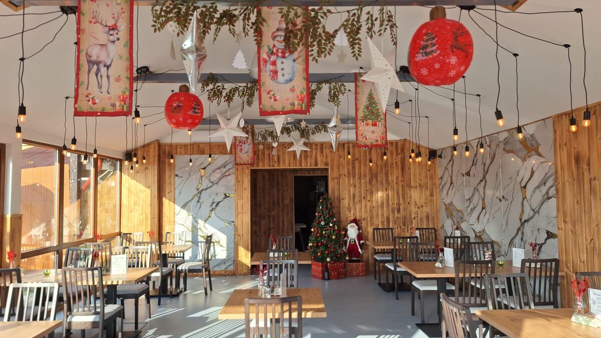 Az ünnepi időszakban a RHM Terasz különösen varázslatos: fények és dekorációk segítenek átélni a karácsony meghittségét. Az udvaron elhelyezett látványos iglu‑fotósarok az étteremből nézve olyan, mintha egy feldíszített hógömbre nyílna kilátás. A karácsonyfától a plüss rénszarvasokon át a pihe‑puha takarókig minden részlet a téli mesevilágot idézi.