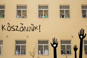 Szolidaritási akciót szervezett a budapesti Radnóti Színház az egészségügyben dolgozókért.