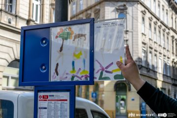 Kerületi óvodások által készített alkotások csalnak mosolyt a buszra várakozók arcára.